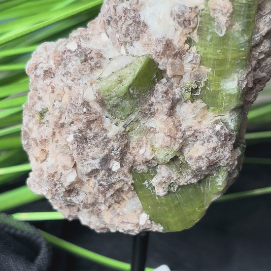 Grüner Turmalin auf Stand mit Muttergestein – 13,5 cm