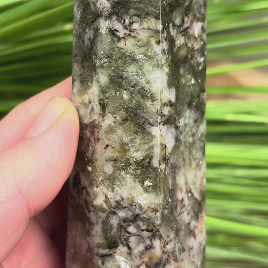 Der grüne Turmalin gilt als kraftvoller Herzstein, der emotionale Heilung und Mitgefühl fördert. Er soll das Herz öffnen, Lebensfreude schenken und dabei helfen, negative Energien in positive umzuwandeln. In Kombination mit Quarz wird seine Energie verstärkt, während Mica für Klarheit und Reflexion steht.