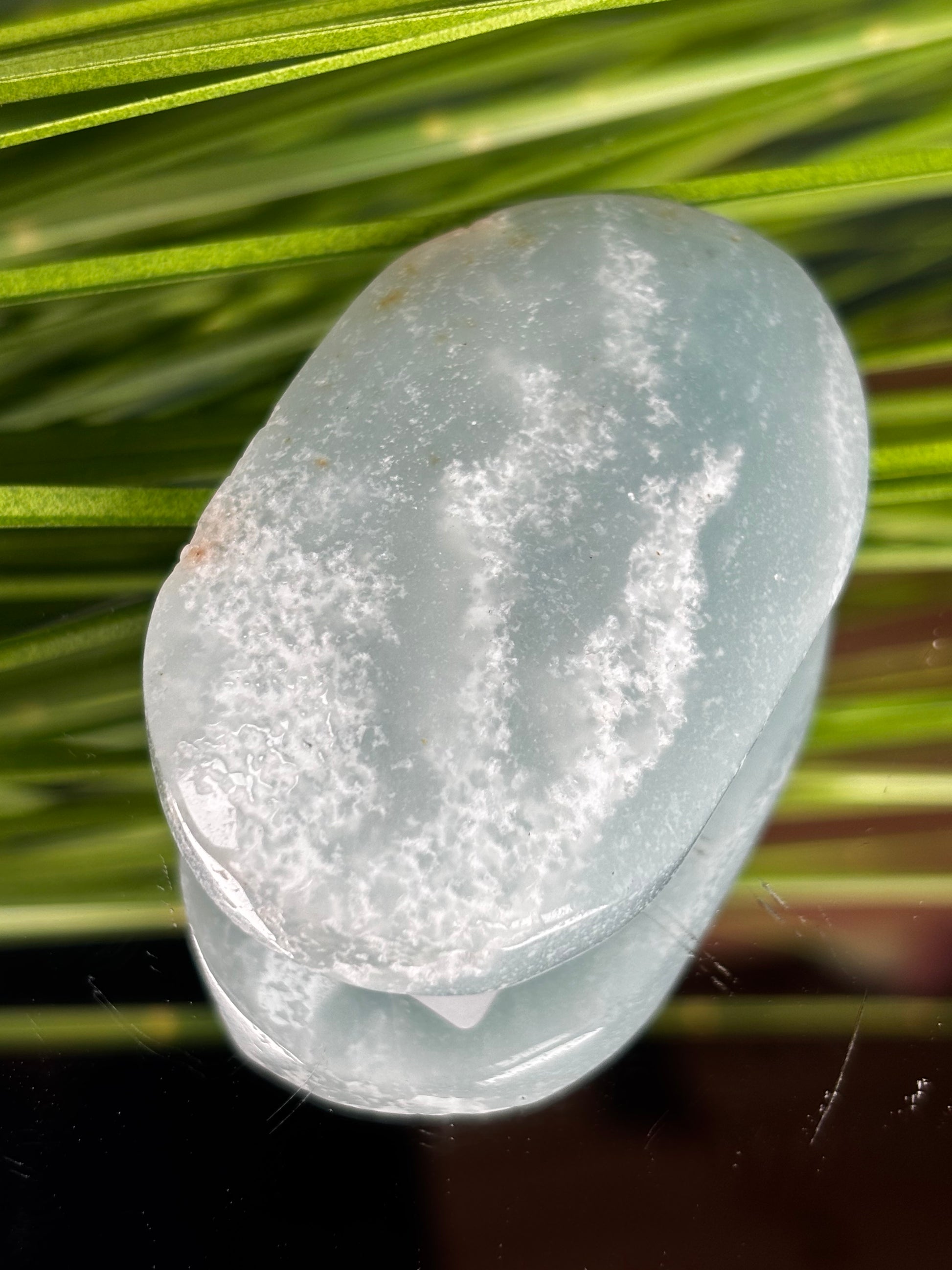 Diese wunderschönen Karibischen Calcit Handsteine begeistern mit ihren sanften türkis-blauen Farbtönen und ihrer angenehm glatten Oberfläche. Jeder Handstein ist ein einzigartiges Naturkunstwerk mit charakteristischen weißen und blauen Bänderungen.