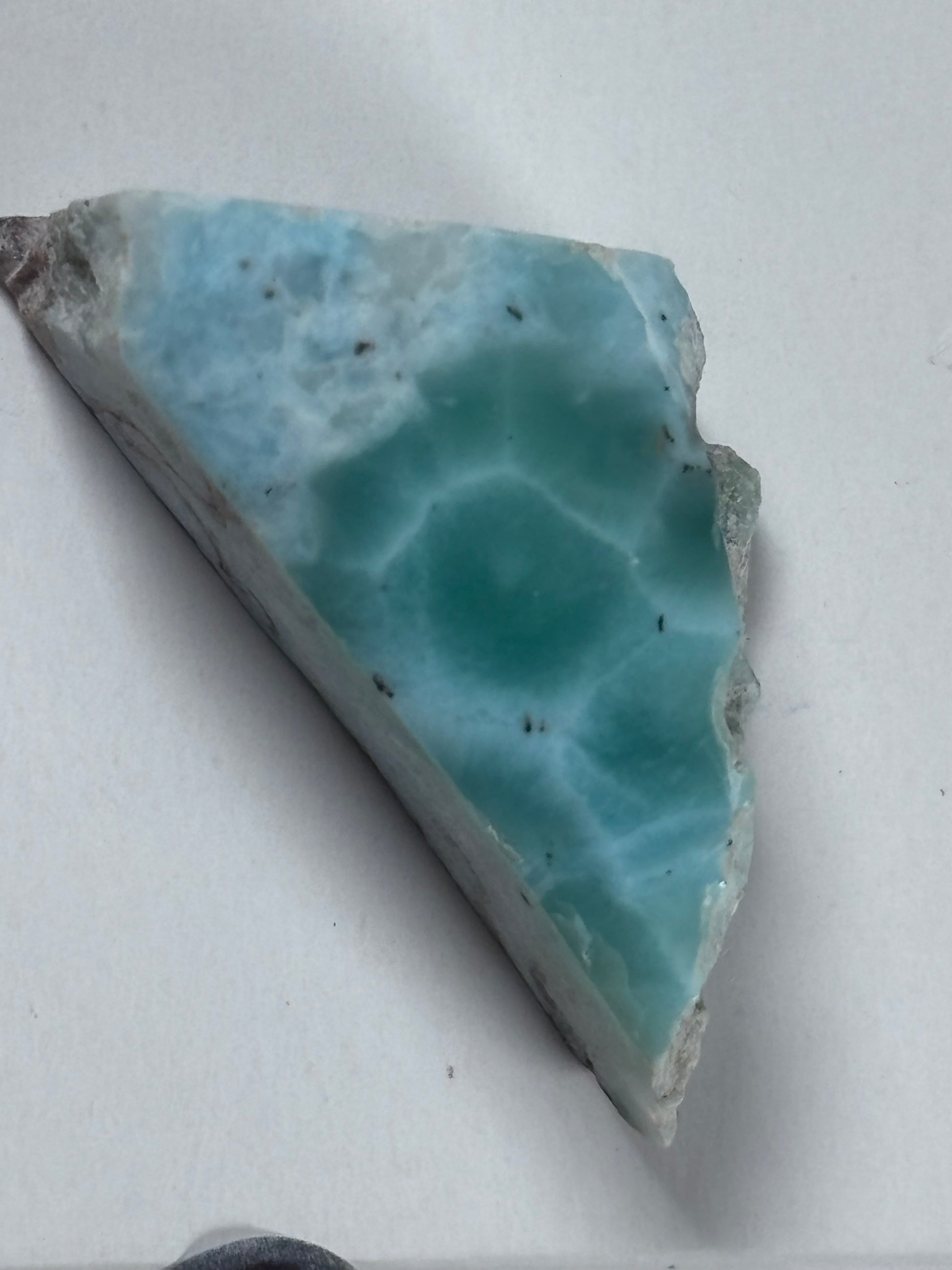 Kleines Larimar-Stück aus der Dominikanischen Republik. Natürlicher karibischer Edelstein mit charakteristischer türkisblauer Färbung. Perfekt für Sammler oder zum Tragen als Taschenbegleiter.