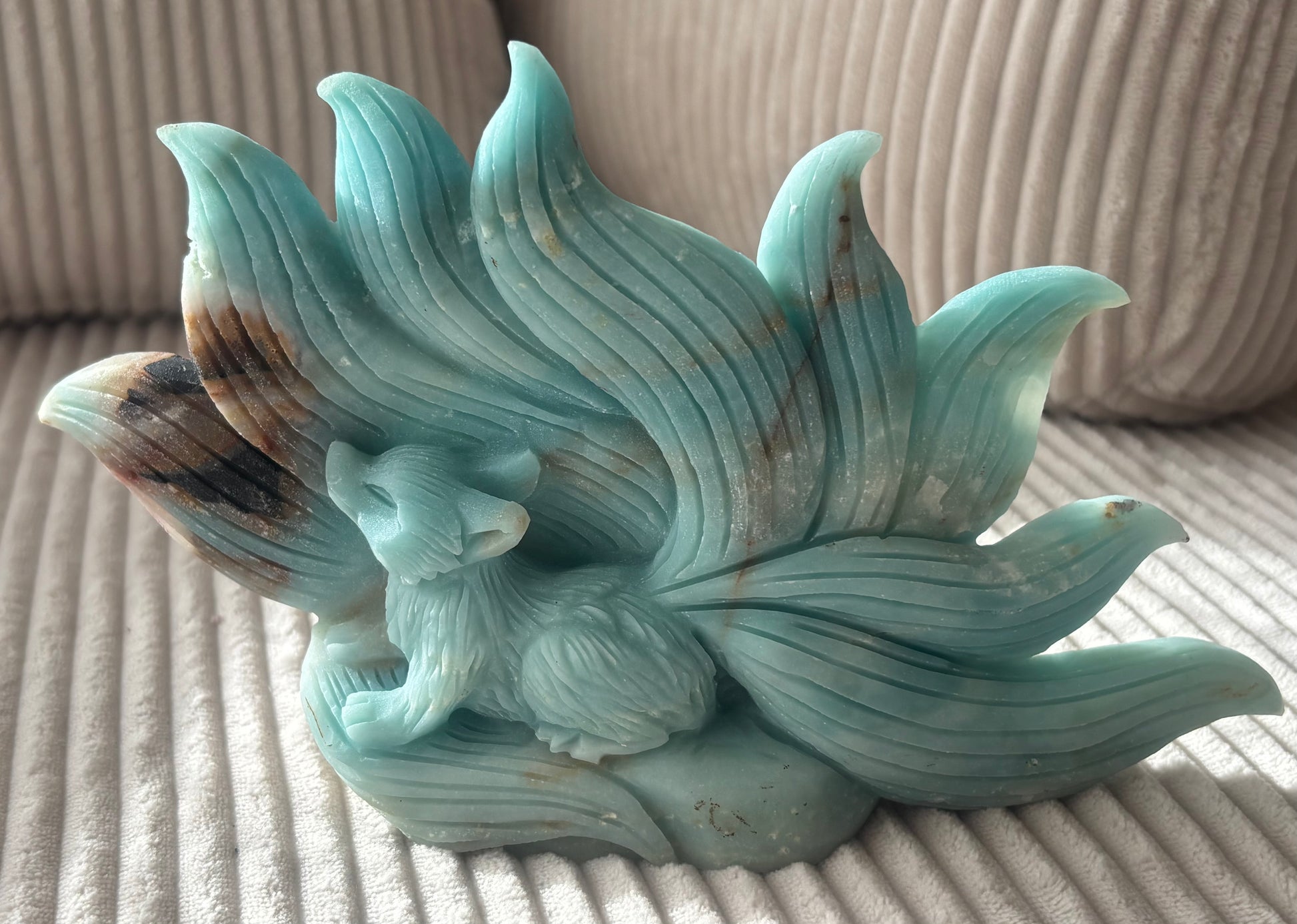 Schnitzerei aus Karibischen Calcit , Nine -tailed Fuchs