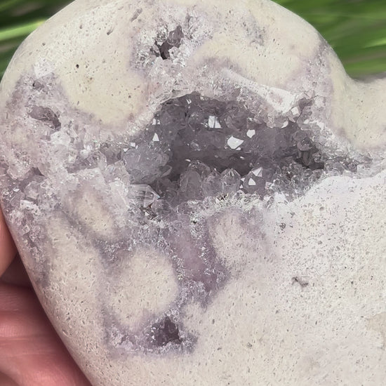 Dieses wunderschöne große Pink-Amethyst-Herz begeistert mit seiner zarten rosa -Lila Färbung und funkelnden Drusen-Kristallen im Inneren. Der seltene Pink Amethyst zeigt sanfte Rosatöne von zartem Pastellrosa bis hin zu kräftigerem Pink-Lila, kombiniert mit glitzernden Kristallformationen. In liebevoller Herzform geschliffen ist es ein kraftvolles Symbol für Liebe und emotionale Heilung.