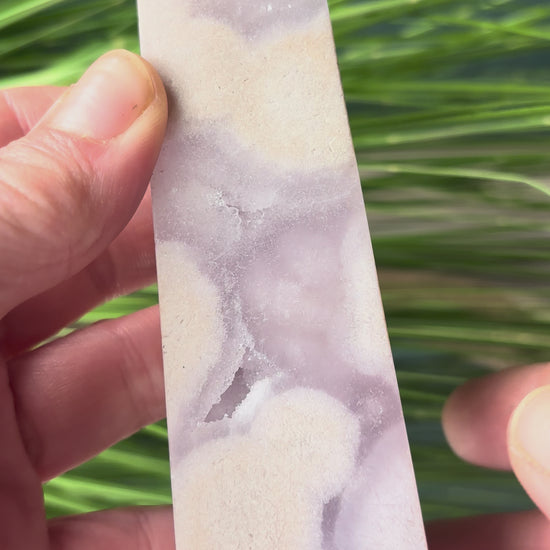 Dieser wunderschöne Pink-Amethyst-Turm begeistert mit seiner zarten rosa Färbung und natürlichen Kristallformationen. Der seltene Pink Amethyst zeigt sanfte Rosatöne von zartem Pastellrosa bis hin zu kräftigerem Pink, oft kombiniert mit funkelnden Drusen und natürlicher Bänderung. In eleganter Turmform geschliffen ist er ein kraftvolles Energiewerkzeug und beeindruckendes Dekorationsstück.
