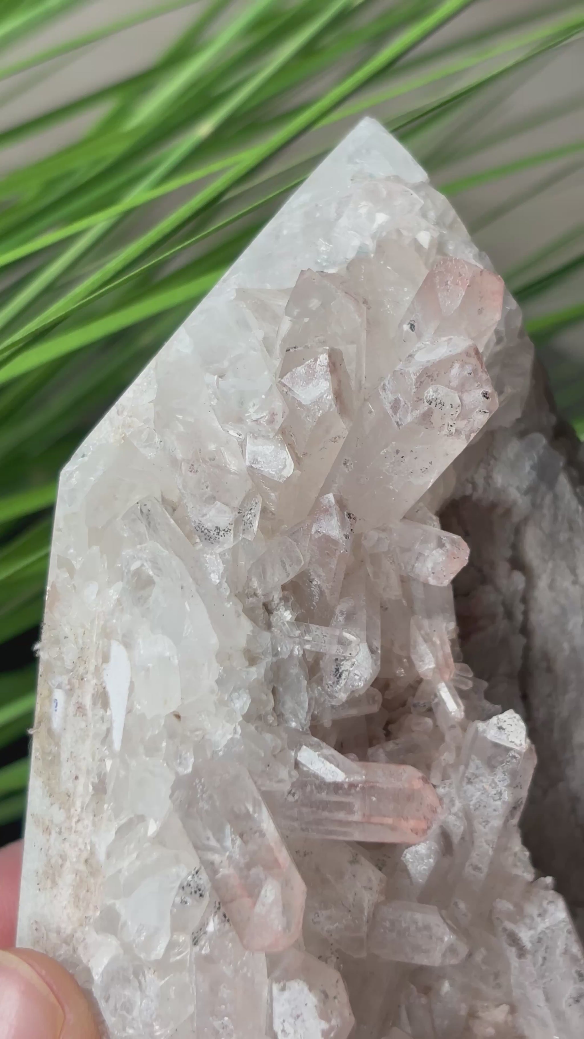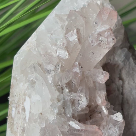 Entdecke diesen einzigartigen Pink Lithium Turm in natürlicher Form. Die Vorderseite zeigt wunderschöne rosa Spitzen und Einschlüsse, während die Rückseite naturbelassen mit Muttergestein erhalten bleibt – ein authentisches Stück Natur.