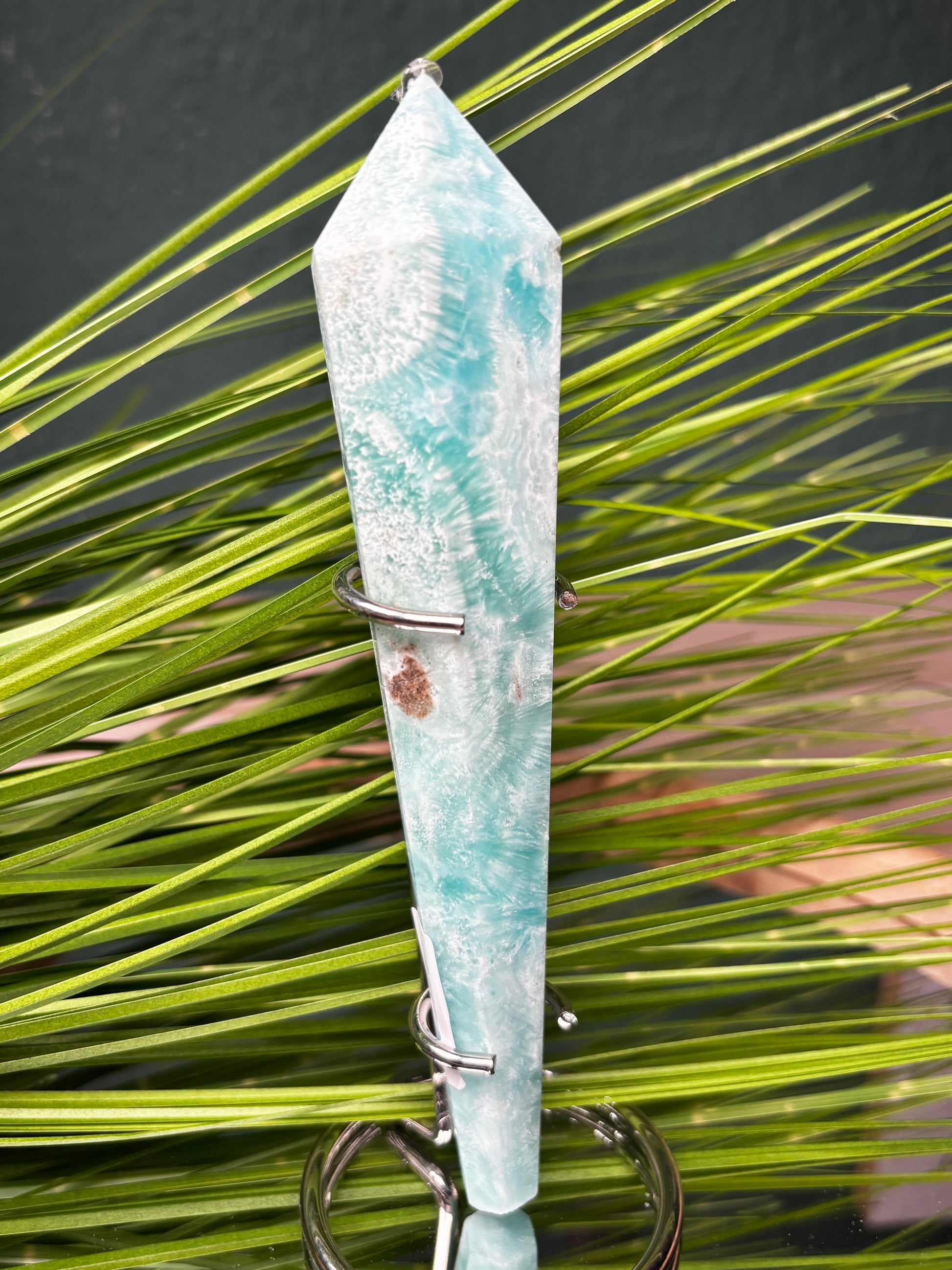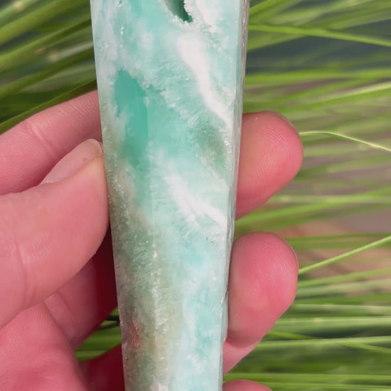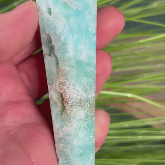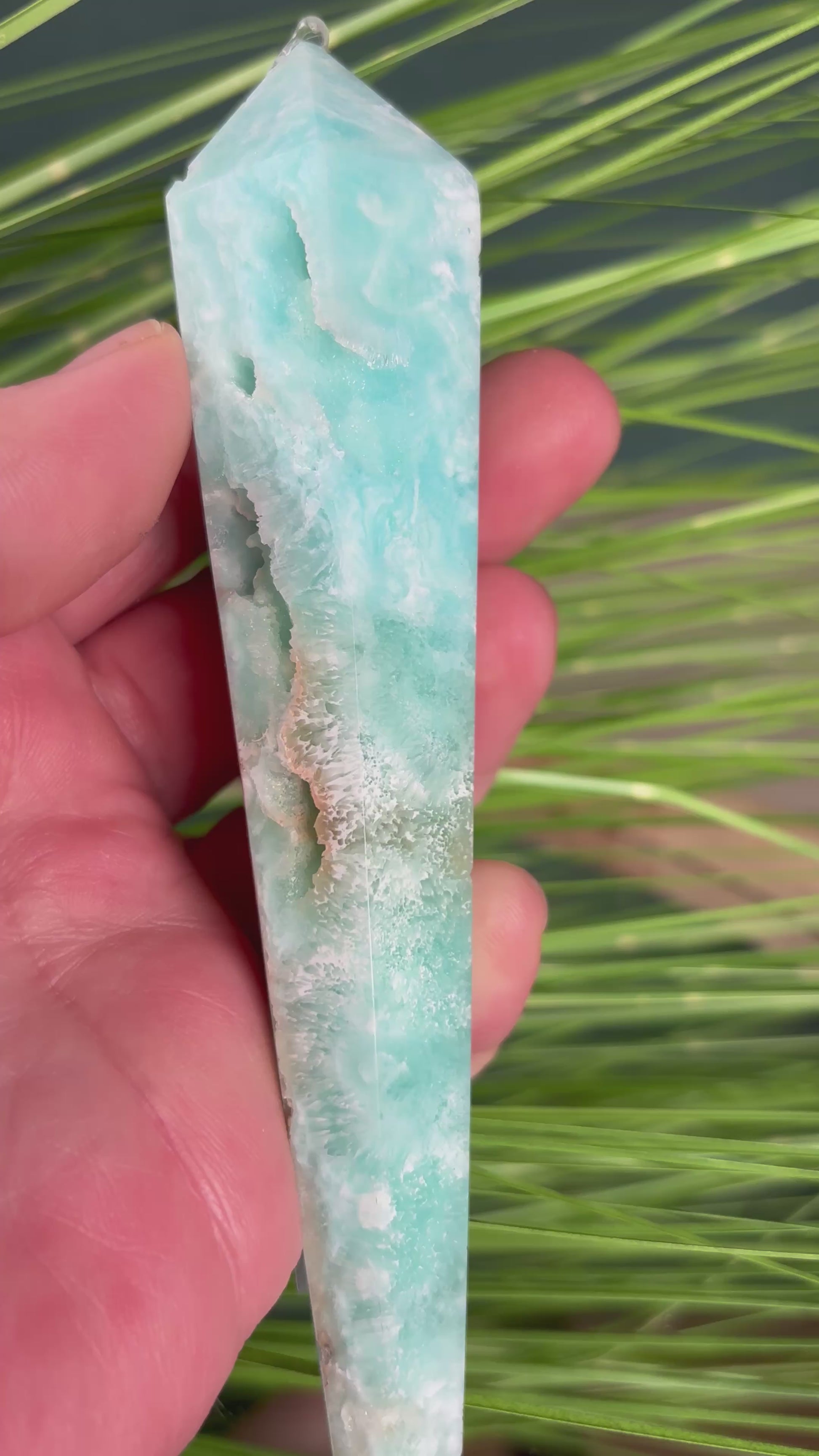 Dieses außergewöhnliche Karibische Calcit Zepter beeindruckt mit seinen sanften türkis-blauen Farbtönen und der charakteristischen Zepterform. Der Karibische Calcit, auch bekannt als Larimar-Calcit, ist ein seltener und begehrter Heilstein.