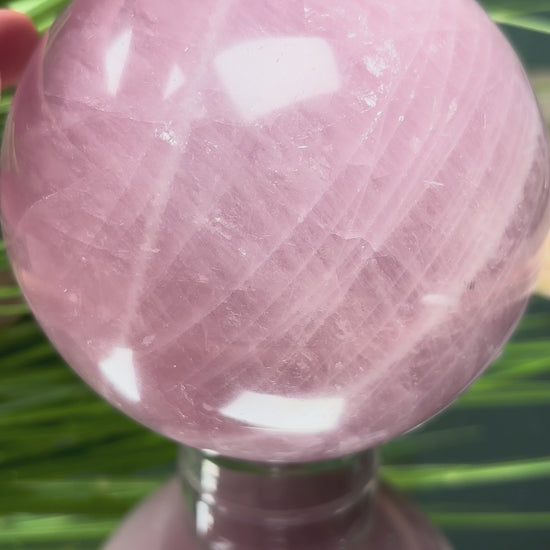 Außergewöhnliche Rosenquarz-Kugel in dunklem Rosa mit 10,2 cm Durchmesser. Diese hochwertige Kugel besticht durch ihre intensive, dunkelrosa Färbung – eine seltene und begehrte Farbvariante des Rosenquarzes. Die sorgfältige Politur und perfekte Kugelform unterstreichen die natürliche Schönheit und Tiefe der Farbe.