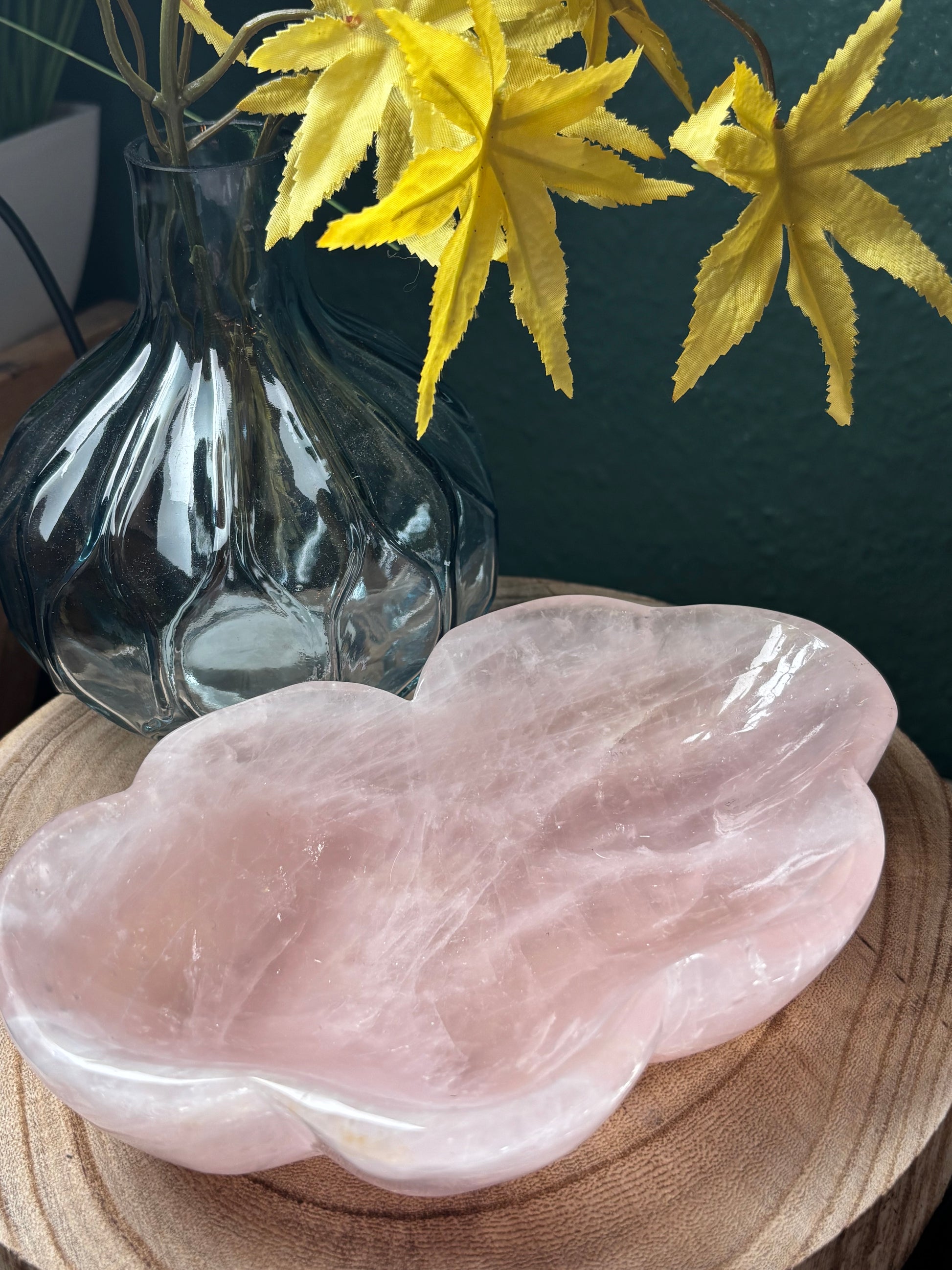 Rosenquarz-Schale in Wolkenform – Große tiefe Schale