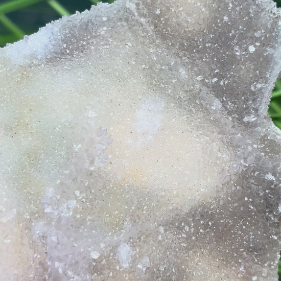 Diese wunderschöne Zeolith-Scheibe begeistert mit ihren zarten Pastelltönen und funkelnden Kristallspitzen, die an eine sanfte Galaxy erinnern. Die natürliche Zeolith-Formation zeigt feine Glitzereffekte und delicate Kristallspitzen in sanften Farbtönen von zartem Rosa über Hellblau bis hin zu cremigen Beigetönen. Ein faszinierendes Naturwunder mit magischer, verträumter Ausstrahlung.